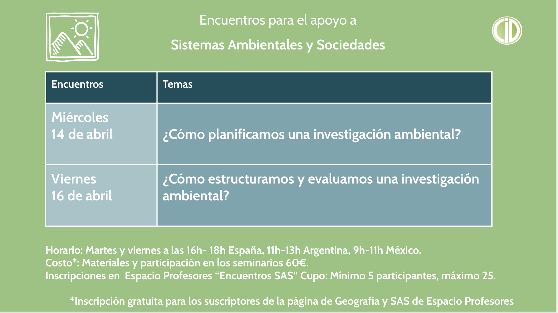 Los encuentros de la asignatura de Sistemas Ambientales y Sociedades tienen como propósito apoyar a los profesores de esta materia con recursos en español.
